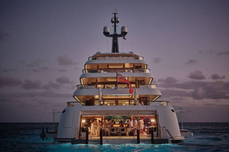Her six-deck profile is sleek and low, with a strong bow. Innovative use of glass throughout offers spectacular wraparound views. A standout feature is the yacht’s groundbreaking aft area, with a beach club entertainment space featuring fold-down balconies on 3 sides, beneath a glass swimming pool with waterfall cascade. Guests can also retreat to the onboard cinema or work out in the sundeck gym.