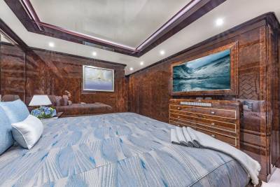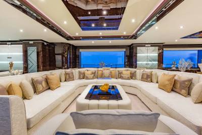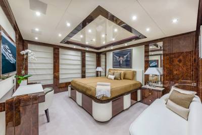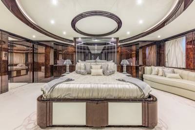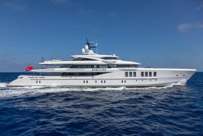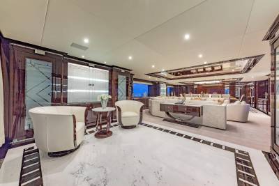 Launched in 2018 by the renowned Italian shipyard Benetti, Spectre is a masterpiece of modern yachting. Winner of multiple awards, she stands as a testament to refined naval architecture by Mulder Design and the visionary styling of Giorgio Cassetta. With five impeccably designed decks, Spectre exudes a bold yet graceful presence, drawing inspiration from the aerodynamic lines of a US bomber. Her low 3.2m draft allows seamless access to shallow cruising grounds like the Bahamas, while advanced engineering makes her up to 30% faster than conventional displacement yachts of her class. Onboard, guests enjoy sprawling outdoor lounges, a touch-and-go helipad, a full-beam master suite with private spa access, and lower deck cabins directly connected to a state-of-the-art wellness center. Spectre is more than a yacht, she’s a floating expression of power, elegance, and innovation.