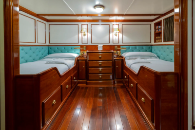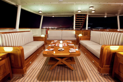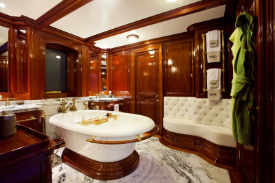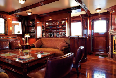Steel is bold in her design and build. She was built in British yard Pendennis in 2009 and was their largest build. The designs are just as beautiful as they are bold with a retro style interior by Liebowitz & Pritchard in Cuban mahogany. Steel’s entertainment spaces are designed to work for you. Her spacious exteriors provide the ideal backdrop for al fresco dining. The grand room with high ceilings and large windows offers the space for formal dining with panoramic views.