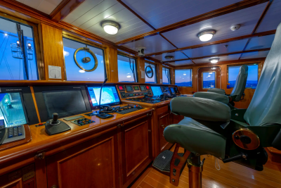 Steel’s structure and build are what make her an exceptional global explorer. She is Ice classed with an economic range of 7000 NM as well as being Lloyds certified Ice Class 1A. She is engineered for stable cruising with stabilisers so no matter where she’s cruising, guests can sail in comfort.