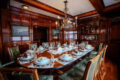 The Salon is a flexible space for a range of guests. Fitted with comfortable furniture, a bar and a cigar humidor guests can see in the evening in a social environment with a couple of drinks. If you prefer a movie night to see out the days activities, the space can also transform into a home cinema.
