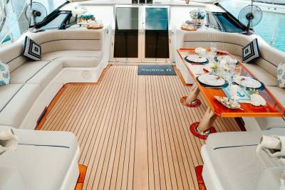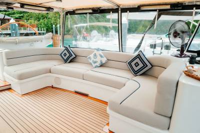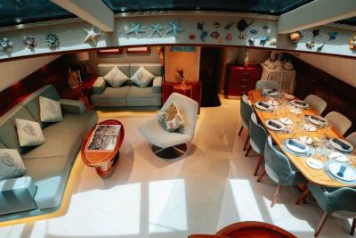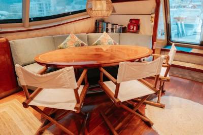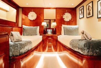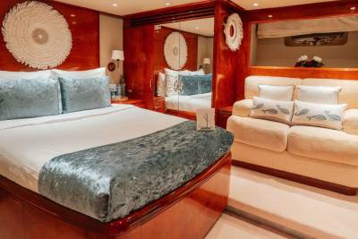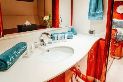 Thandeka accommodates 8 guests in 4 well-appointed cabins, a spacious master and VIP, both with walkaround double beds, a twin cabin and flexible bunk cabin, ideal for children.