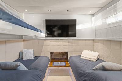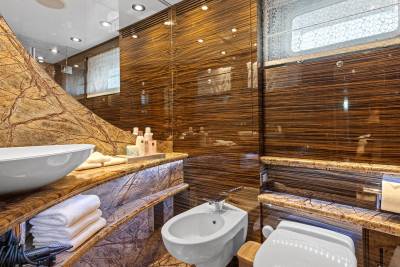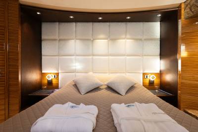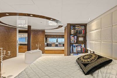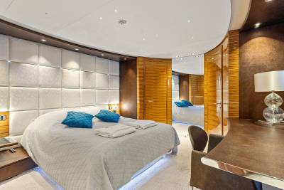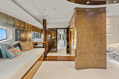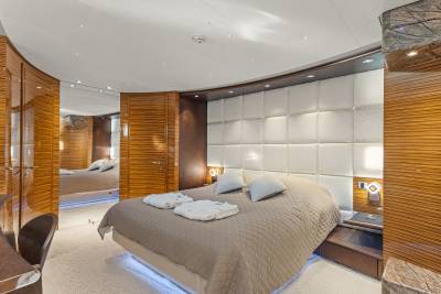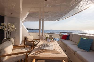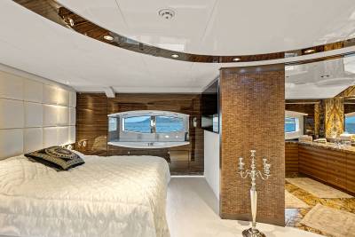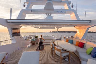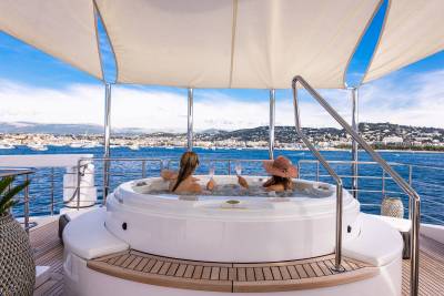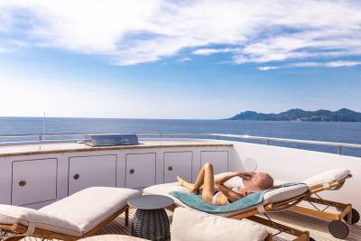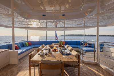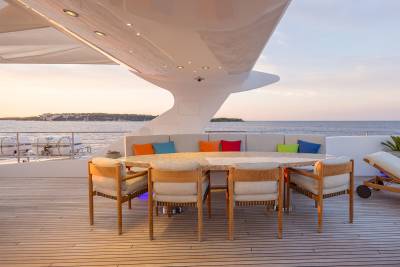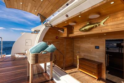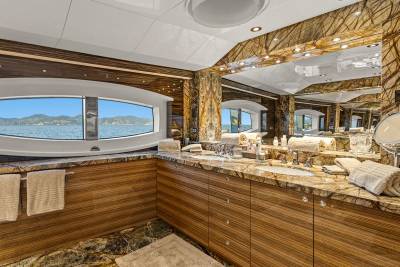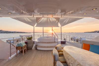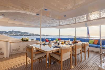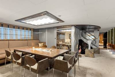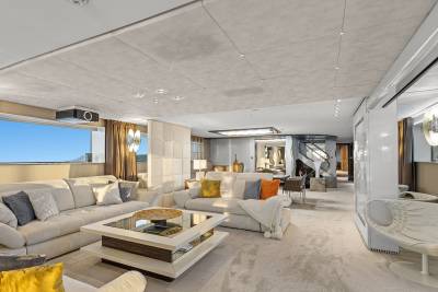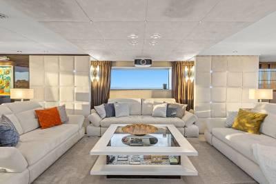 Aboard this yacht, stylish interiors blend seamlessly with lavish outdoor spaces. The redesigned sundeck features a tranquil Jacuzzi perfect for relaxing, while the Beach Club invites you to unwind with a sauna and first-class gym facilities. Dine al fresco, relax on the spacious U-shaped sofa or explore endless adventure with the extensive range of water toys and fitness equipment.