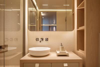 Whether it’s a formal dinner for 12 in the upper salon or relaxed lounging in the main salon with concealed TV, the spaces adapt to your rhythm of life.