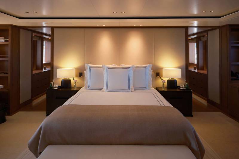 Designed by RWD and refreshed throughout, Vassa’s accommodation balances generous volume with a warm, modern aesthetic. The full‑beam principal suite on the main deck is a private hideaway with its own lounge, spa access, and a spacious his‑and‑hers en suite. Below, two doubles and two twins offer a sense of quiet indulgence, with clean lines, soft lighting, and carefully placed artwork. Additional flexible cabins near the suite entrance adapt seamlessly for staff or extra guest use, ensuring every journey feels considered, restful, and effortlessly comfortable.