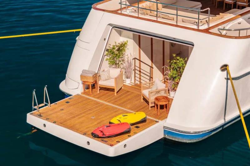 The 11‑metre Boomeranger chase boat powers tow sports and quick coastal hops, backed by two 6.12‑metre RIBs for smooth shuttles. New Sea‑Doo GTX 230 jet skis and F5S Seabobs add instant fun, while SUPs, skis and wakeboards keep the tempo flexible. With towables for families, snorkelling sets and wetsuits ready to go, the beach lounge becomes an easy base for long afternoons on the water.