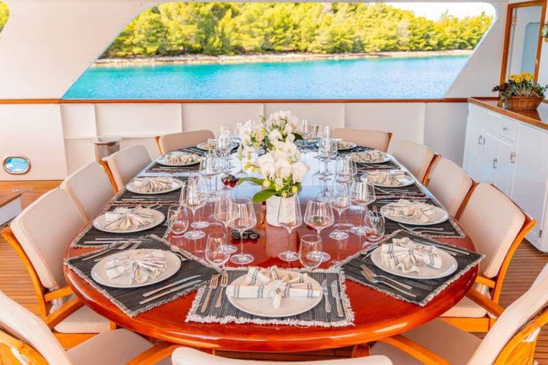 Led by a seasoned captain and a cohesive team, service on Victory is attentive without fuss. Expect smooth tender moves, well‑paced days and dining that feels relaxed yet refined. As an approved RYA water sports centre, on‑water set‑ups are handled with safety and ease, while the crew’s familiarity with the yacht post‑refit keeps everything running quietly in the background.
