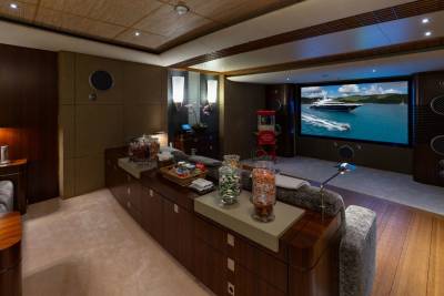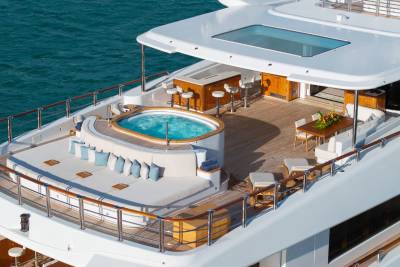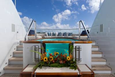 Six decks provide ample variety for guests of all ages with an incredible sun deck featuring a forward Jacuzzi, and a large pool at the aft. There is a choice of spaces for al fresco dining and celebration; with a disco set up outdoors or indoors, as well as a cinema room on the lower deck or an outdoor cinema set up, there’s plenty of opportunity for entertainment.