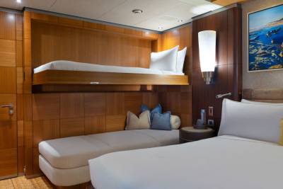 The striking space is apparent wherever you are on board. With large side walkways, spacious living areas and large cabins, Wheels provides ample room for everyone to enjoy sociable moments together or solitary peace and quiet in total comfort.