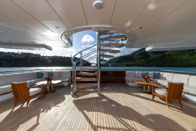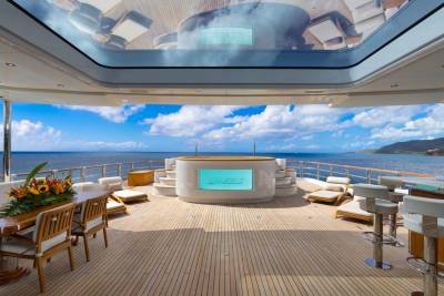 At 75.5m Wheels is an impressive charter yacht. Offering the full range of amenities from an onboard cinema, a massage room, a gym as well as large pool on the sun deck, a beautiful beach club area, six guest cabins including a spectacular split-level principal suite, there are many reasons why guests come back time and time again.