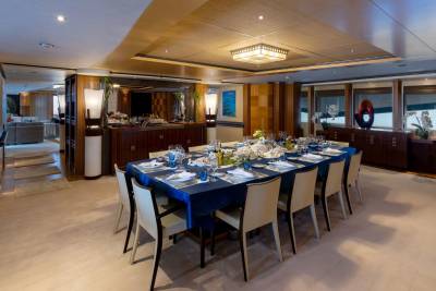 The crew on board are a positive, smiling team, many of whom having been with the Wheels operation for many years. Guests will feel the happy dynamic instantly and it sets the tone for a memorable, easy and seamlessly managed charter experience for guests of all ages. With thoughtfully placed crew areas and clever access, the team are able to move around without disturbing the guests, enhancing their ability to provide flawless hospitality at all times.