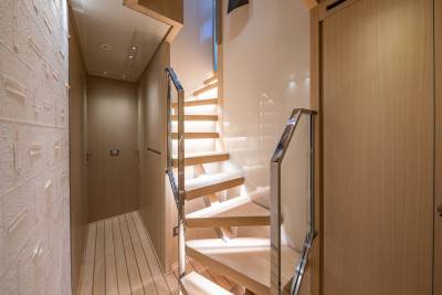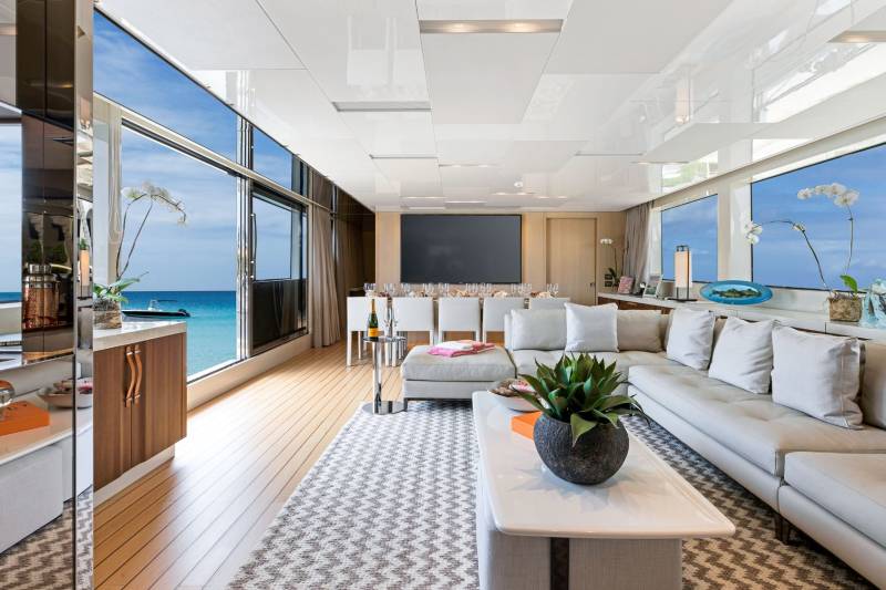 Step into a main-deck salon designed around flow and light. Wide windows, contemporary finishes and refined furnishings create a relaxed but polished atmosphere. The hydraulic balcony transforms the space in seconds, letting the sea become part of the room. It is sociable without feeling busy and elegant without trying too hard.